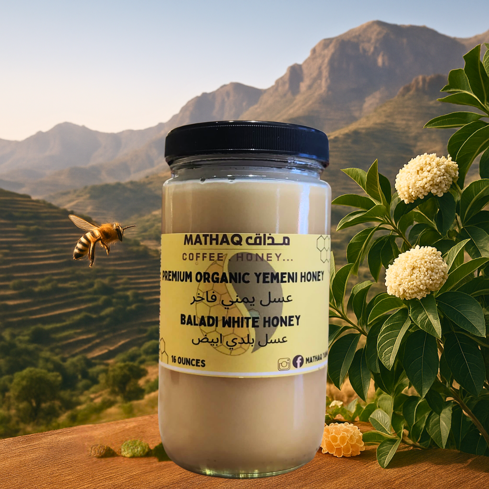 Baladi White Honey (16oz). A rare and luxurious honey from Yemen’s highlands, Baladi White is celebrated for its creamy texture, pure white color, and delicate sweetness. Known as one of the finest honeys in the world, it is both a natural superfood and a symbol of Yemeni heritage.